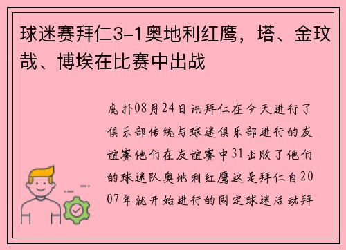 球迷赛拜仁3-1奥地利红鹰,塔、金玟哉、博埃在比赛中出战
